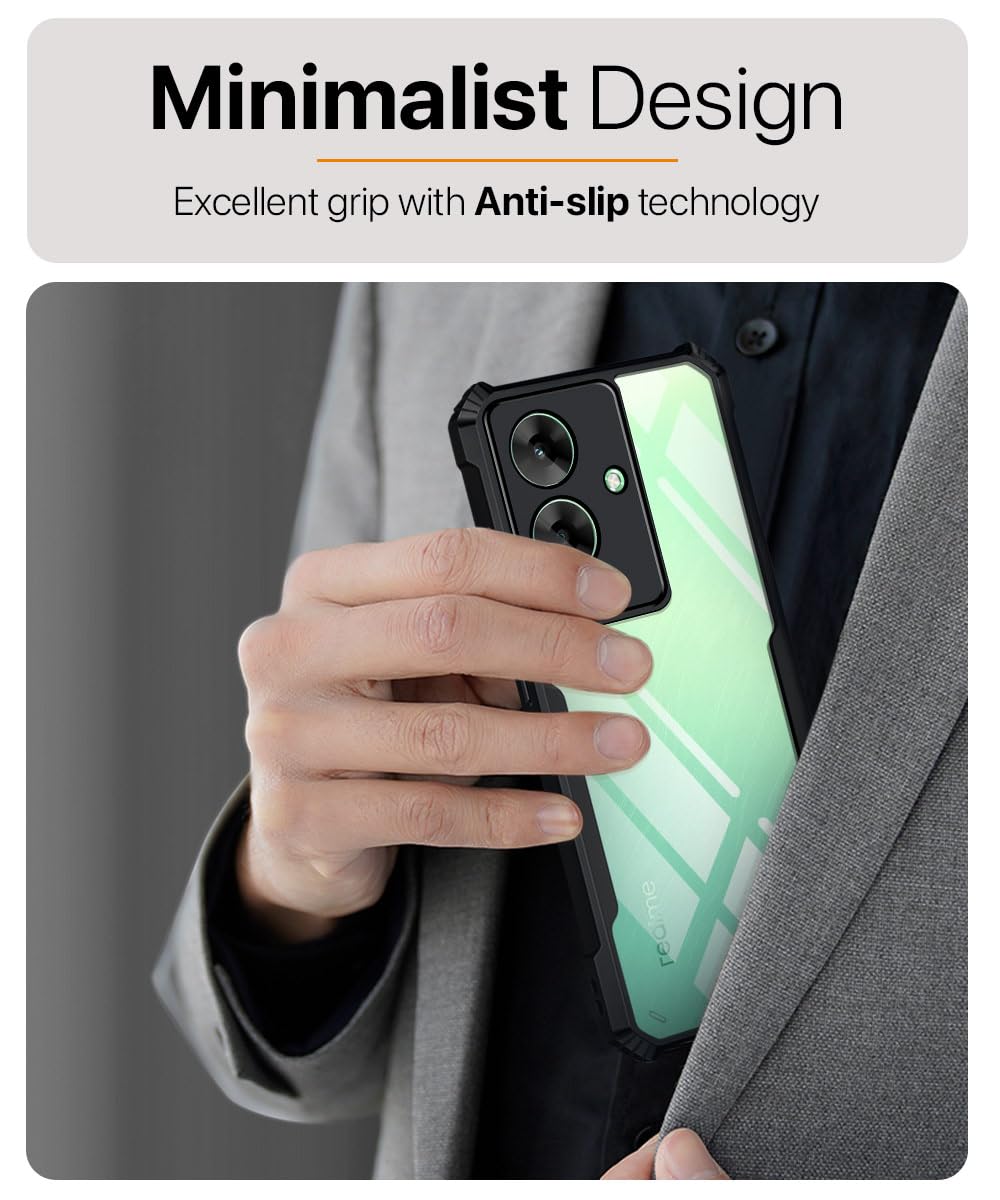Shock Proof Clear Protective Back Case for Realme Narzo N61 | Realme C61 – AirEDGE Technology | 360 Degree Camera Protection | Transparent Hybrid Back Case Mobile Cover – Black is designed with premium quality materials to provide superior protection, durability, and style for your smartphone. It offers a perfect balance between functionality and aesthetics, ensuring your device stays safe from scratches, impacts, and daily wear. Engineered with precision, it features accurate cutouts for ports, buttons, and cameras, making it highly convenient for everyday use. The slim and lightweight design ensures that your device retains its sleek profile without adding unnecessary bulk. Whether it is a nano film tempered glass, a hybrid back case, or a camera lens protector, each product is created with attention to detail to enhance the user experience and extend the life of your smartphone. The material used ensures long-lasting clarity, anti-scratch performance, and resistance against fingerprints and smudges. It is the ideal choice for users who want both style and substance in their smartphone accessories. This product from KELPUJ reflects innovation and craftsmanship, making it a reliable accessory that safeguards your investment while maintaining modern appeal.