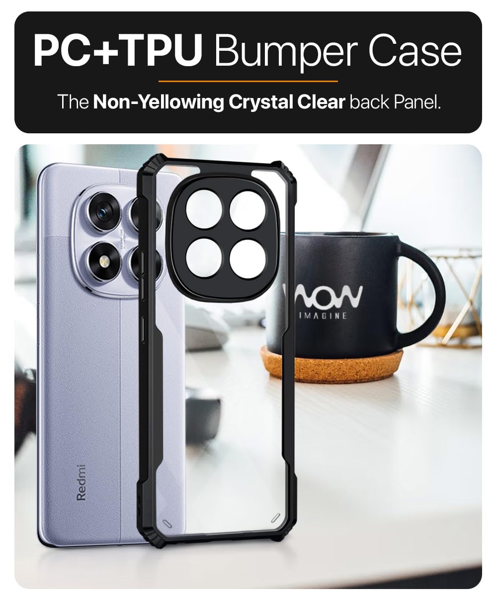 Shock Proof Clear Protective Back Case for Redmi Note 14 Pro 5G | Poco X7 5G – AirEDGE Technology | 360 Degree Camera Protection | Transparent Hybrid Back Case Mobile Cover – Black is designed with premium quality materials to provide superior protection, durability, and style for your smartphone. It offers a perfect balance between functionality and aesthetics, ensuring your device stays safe from scratches, impacts, and daily wear. Engineered with precision, it features accurate cutouts for ports, buttons, and cameras, making it highly convenient for everyday use. The slim and lightweight design ensures that your device retains its sleek profile without adding unnecessary bulk. Whether it is a nano film tempered glass, a hybrid back case, or a camera lens protector, each product is created with attention to detail to enhance the user experience and extend the life of your smartphone. The material used ensures long-lasting clarity, anti-scratch performance, and resistance against fingerprints and smudges. It is the ideal choice for users who want both style and substance in their smartphone accessories. This product from KELPUJ reflects innovation and craftsmanship, making it a reliable accessory that safeguards your investment while maintaining modern appeal.