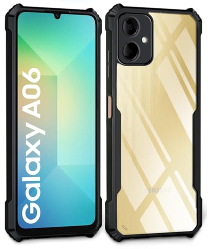 kelpuj Shock Proof Clear Protective Back Case for Samsung Galaxy A06 – AirEDGE Technology | 360 Degree Camera Protection | Transparent Hybrid Back Case Mobile Cover – Black