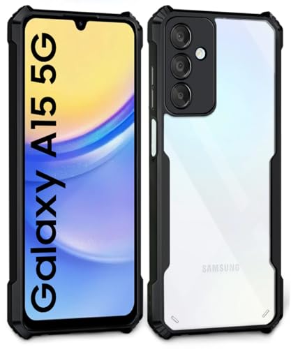 kelpuj Shock Proof Clear Protective Back Case for Samsung Galaxy A15 5G – AirEDGE Technology | 360 Degree Camera Protection | Transparent Hybrid Back Case Mobile Cover – Black