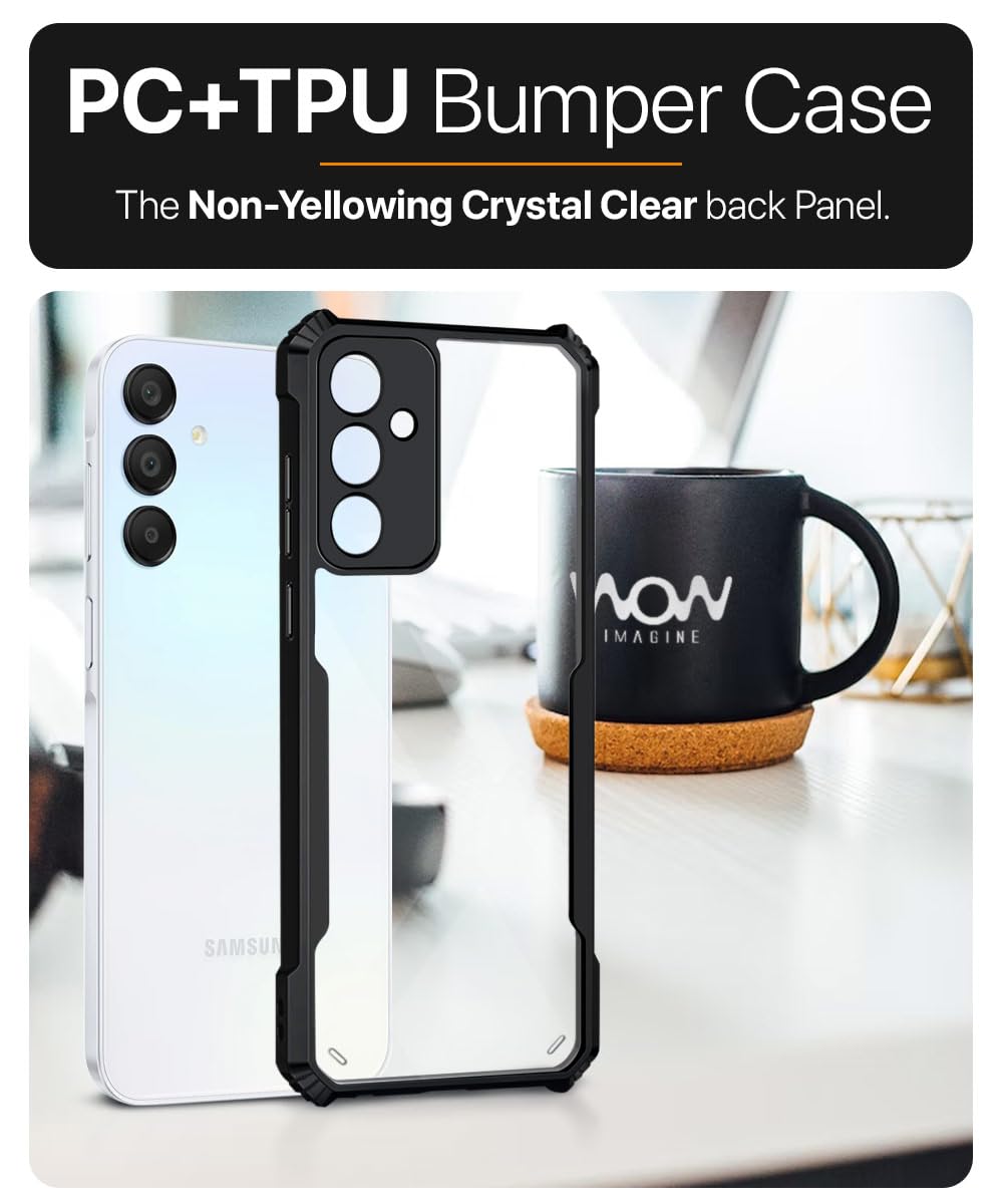 kelpuj Shock Proof Clear Protective Back Case for Samsung Galaxy A35 5G | Galaxy A55 5G- AirEDGE Technology | 360 Degree Camera Protection | Transparent Hybrid Mobile Cover – Black
