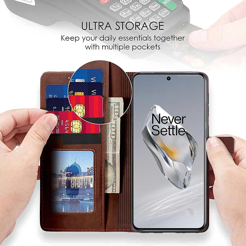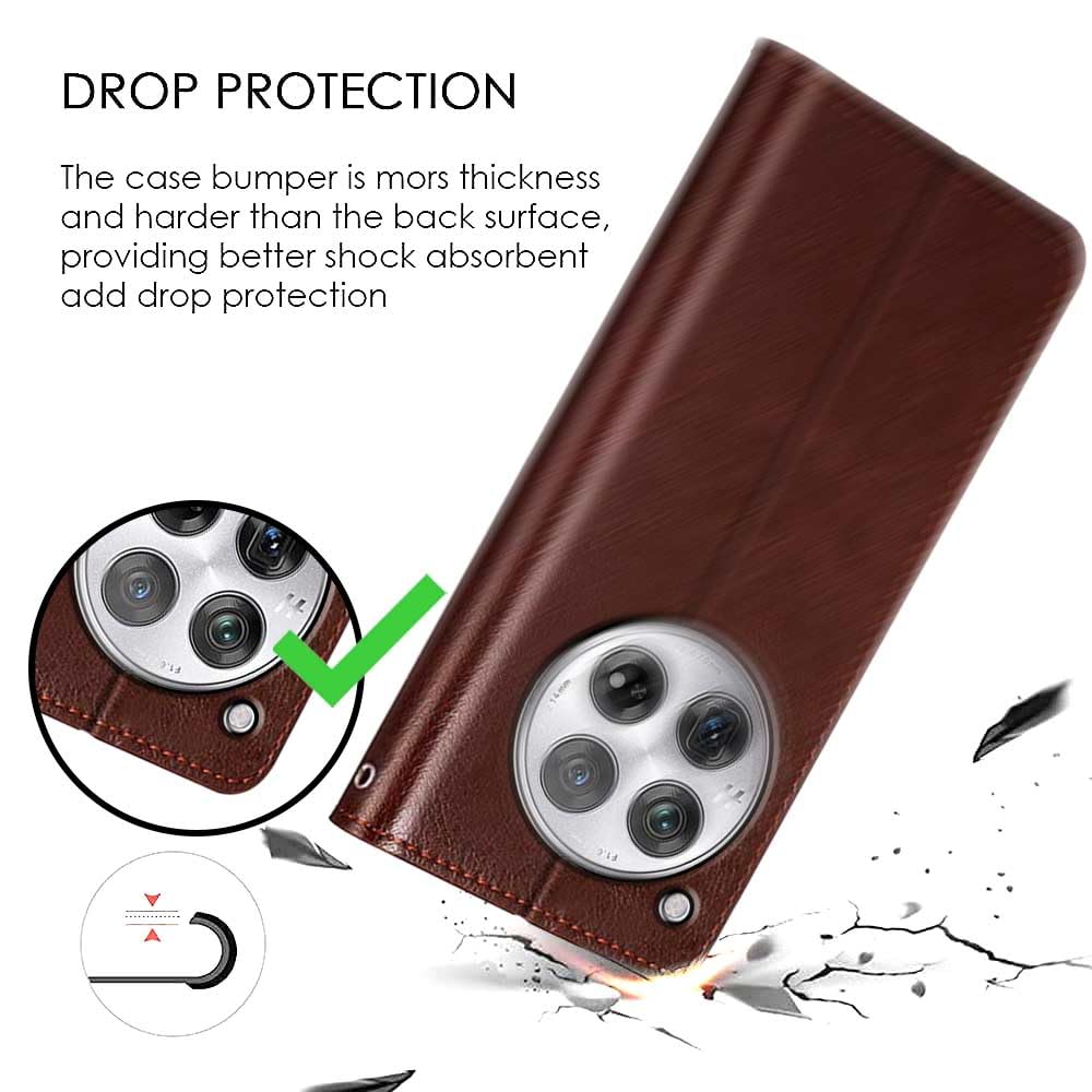 Shock Proof Flip Cover Back Case for 1+ Oneplus 12 5G | Magnetic Wallet Leather Case with Stand