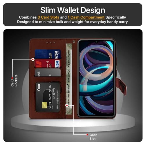 Shock Proof Flip Cover Back Case for Mi Redmi A3 | Magnetic Wallet Leather Case with Stand