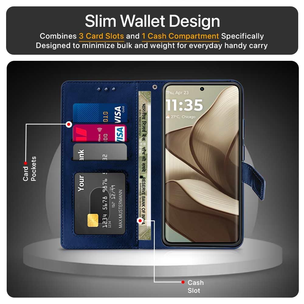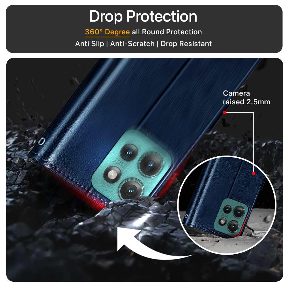 Shock Proof Flip Cover Back Case for Motorola Moto Edge 50 5G | Magnetic Wallet Leather Case with Stand