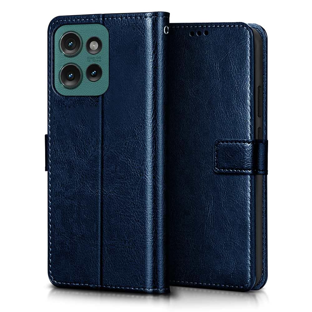 Buy premium shock proof flip cover back case for motorola moto edge 50 5g. Leather finish with magnetic flip closure, wallet pockets and stand support. Durable protection against drops and scratches with a perfect fit for motorola moto edge 50 5g.