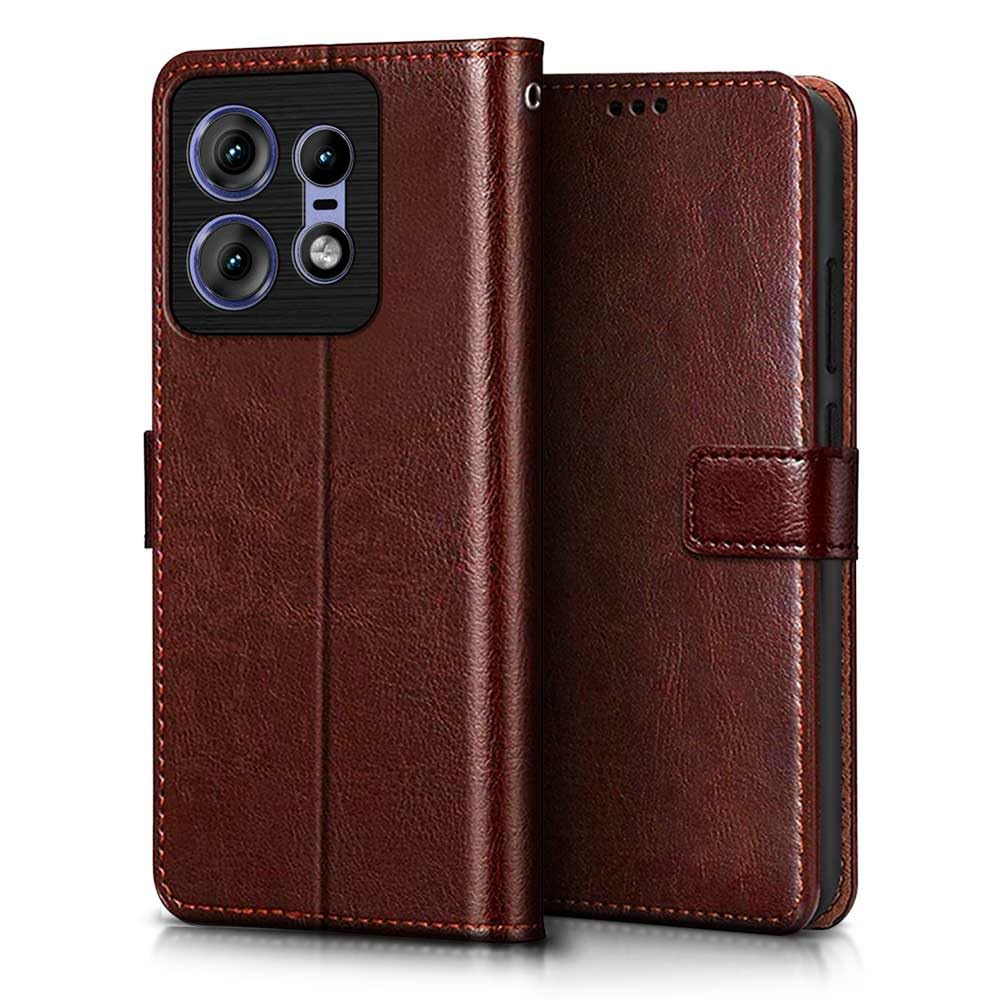 Buy premium shock proof flip cover back case for motorola moto edge 50 pro. Leather finish with magnetic flip closure, wallet pockets and stand support. Durable protection against drops and scratches with a perfect fit for motorola moto edge 50 pro.