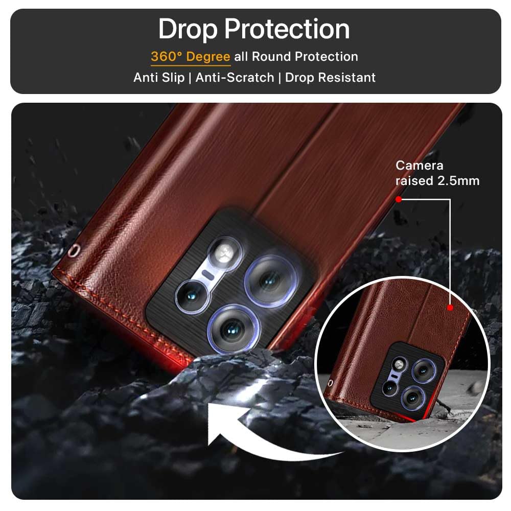 Shock Proof Flip Cover Back Case for Motorola Moto Edge 50 Pro | Magnetic Wallet Leather Case with Stand