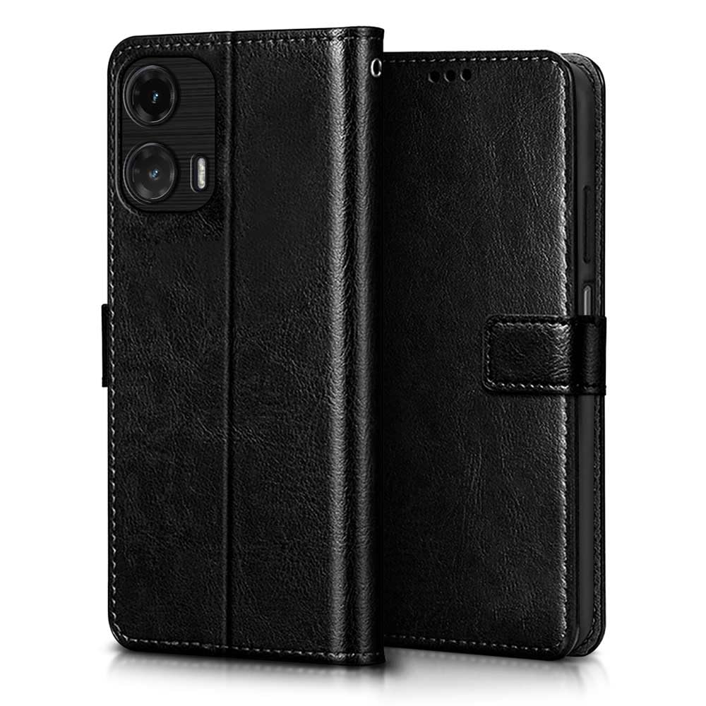 Shock Proof Flip Cover Back Case for Motorola Moto G35 5G | Magnetic Wallet Leather Case with Stand