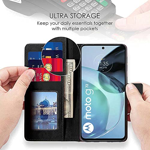 Shock Proof Flip Cover Back Case for Motorola Moto G72 | Magnetic Wallet Leather Case with Stand