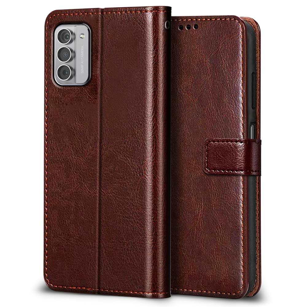 Buy premium shock proof flip cover back case for nokia g42 5g. Leather finish with magnetic flip closure, wallet pockets and stand support. Durable protection against drops and scratches with a perfect fit for nokia g42 5g.