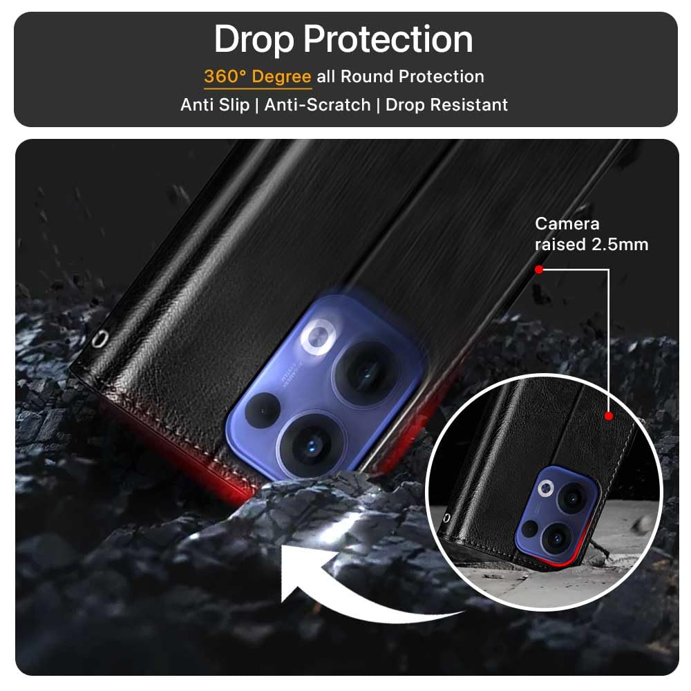 Shock Proof Flip Cover Back Case for Oppo Reno 13 5G | Magnetic Wallet Leather Case with Stand