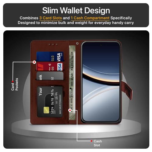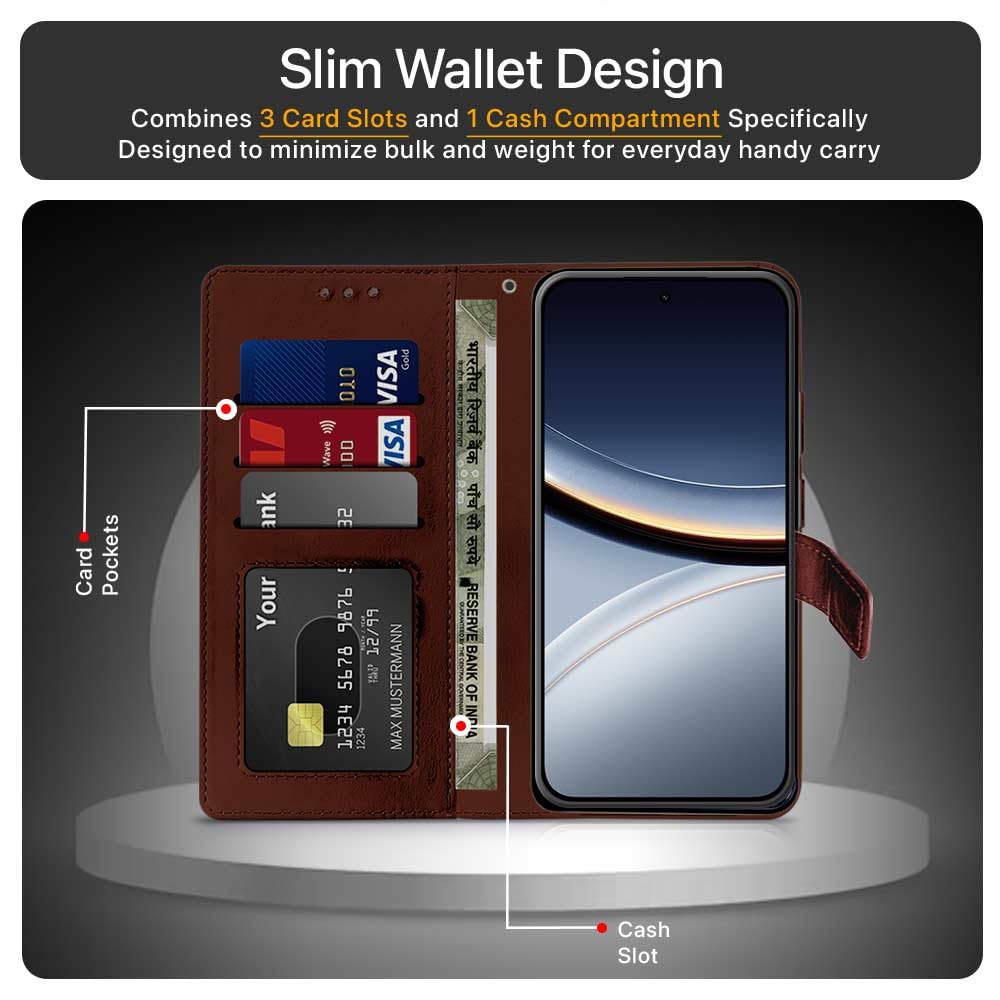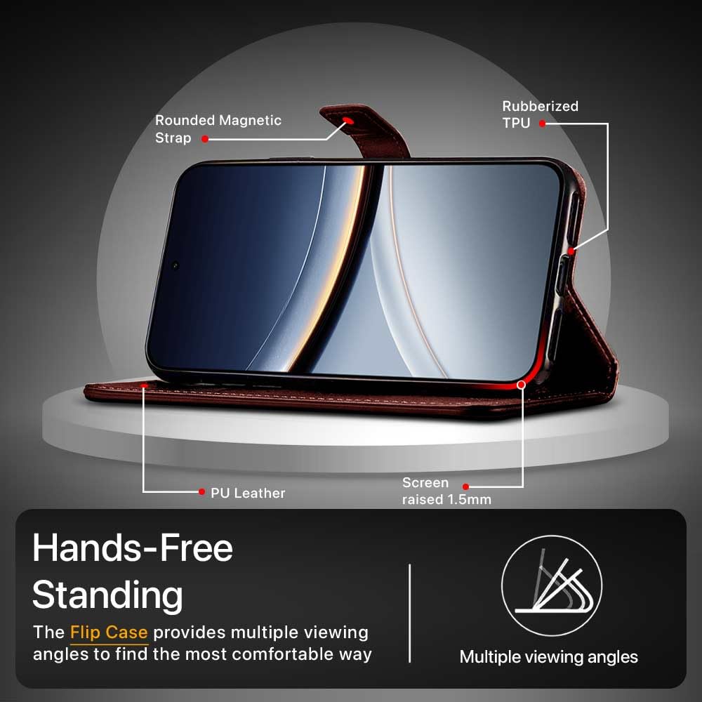 Shock Proof Flip Cover Back Case for Poco F7 5G | Magnetic Wallet Leather Case with Stand