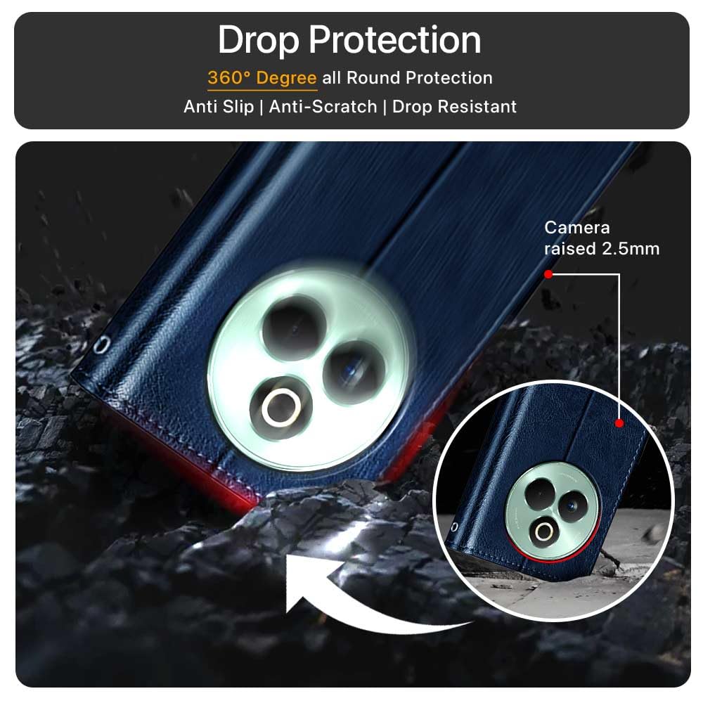 Shock Proof Flip Cover Back Case for Realme P3 Pro 5G | Magnetic Wallet Leather Case with Stand