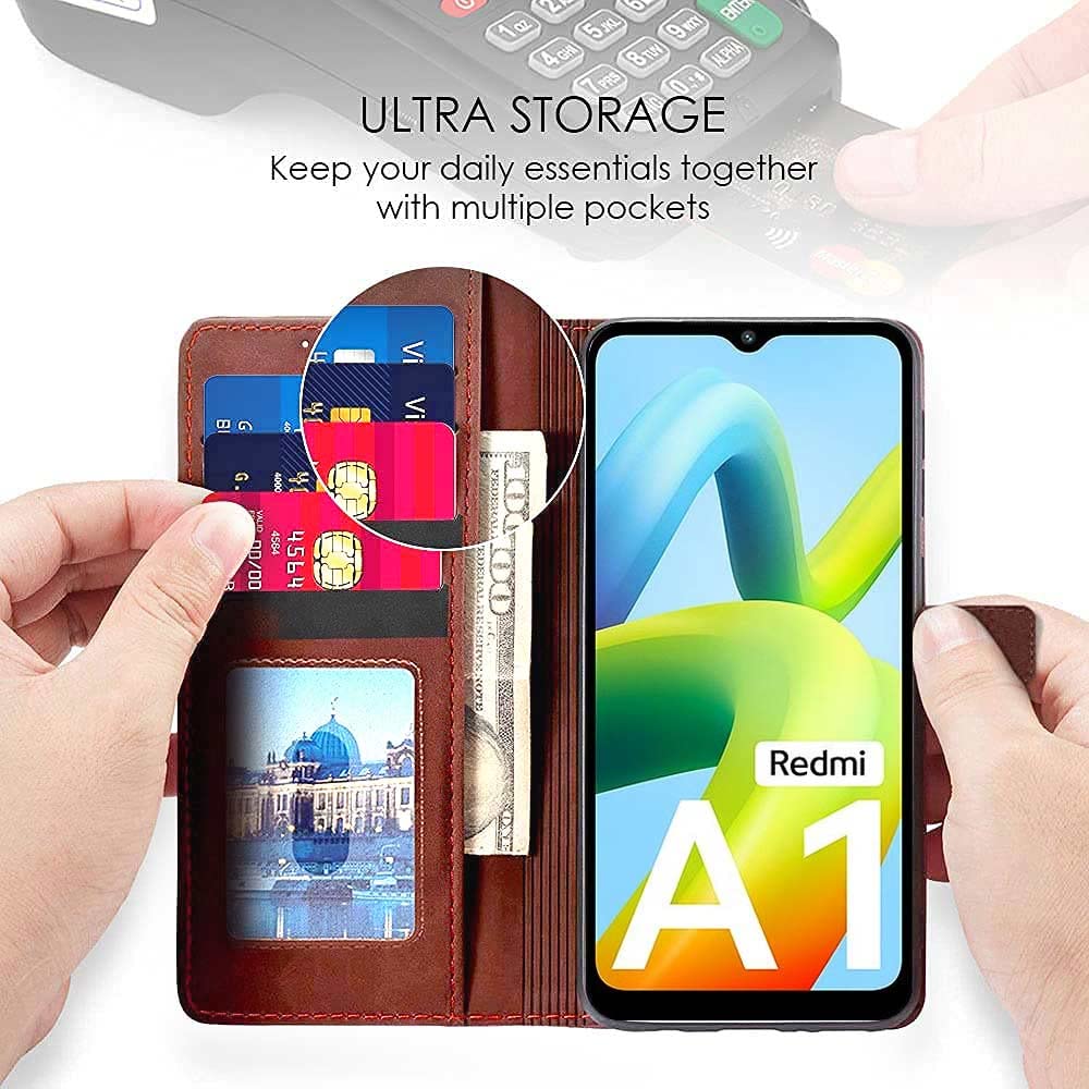 Shock Proof Flip Cover Back Case for Redmi A1 | Magnetic Wallet Leather Case with Stand
