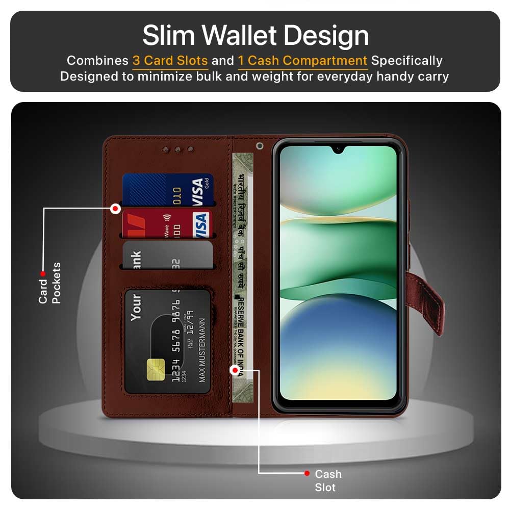 Shock Proof Flip Cover Back Case for Redmi A5 | Magnetic Wallet Leather Case with Stand