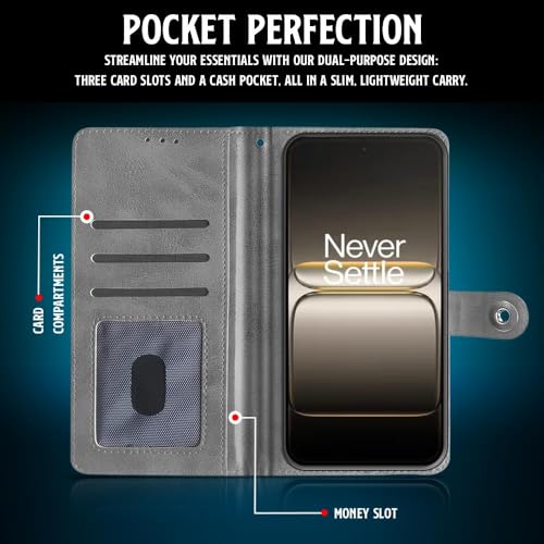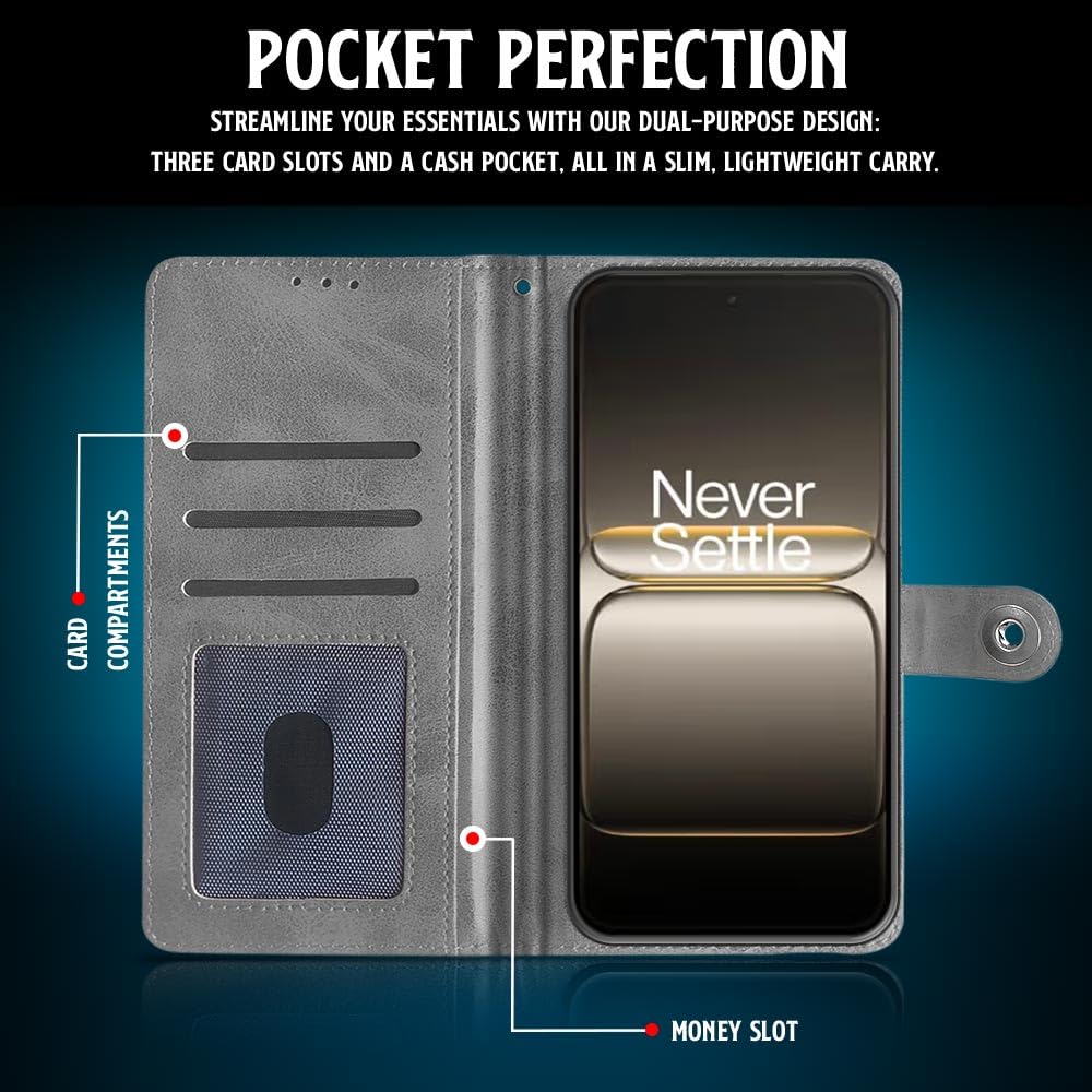 Shock Proof Flip Cover Back Case for 1+ Oneplus Nord 5 | Magnetic Wallet Leather Case with Stand