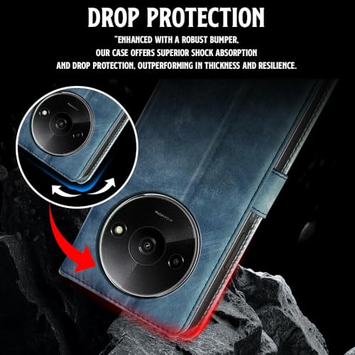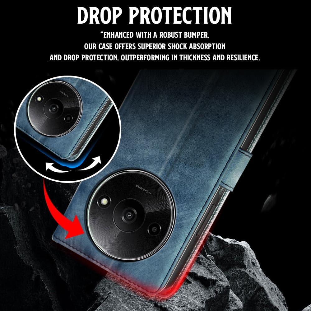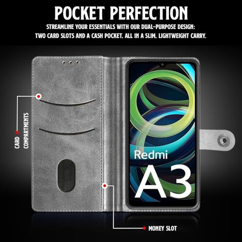 Shock Proof Flip Cover Back Case for Mi Redmi A3 | Magnetic Wallet Leather Case with Stand