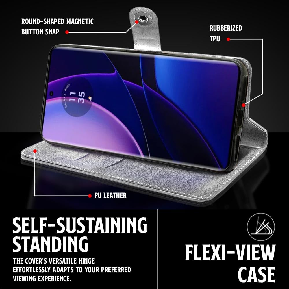 Shock Proof Flip Cover Back Case for Motorola Moto Edge 40 5G | Magnetic Wallet Leather Case with Stand