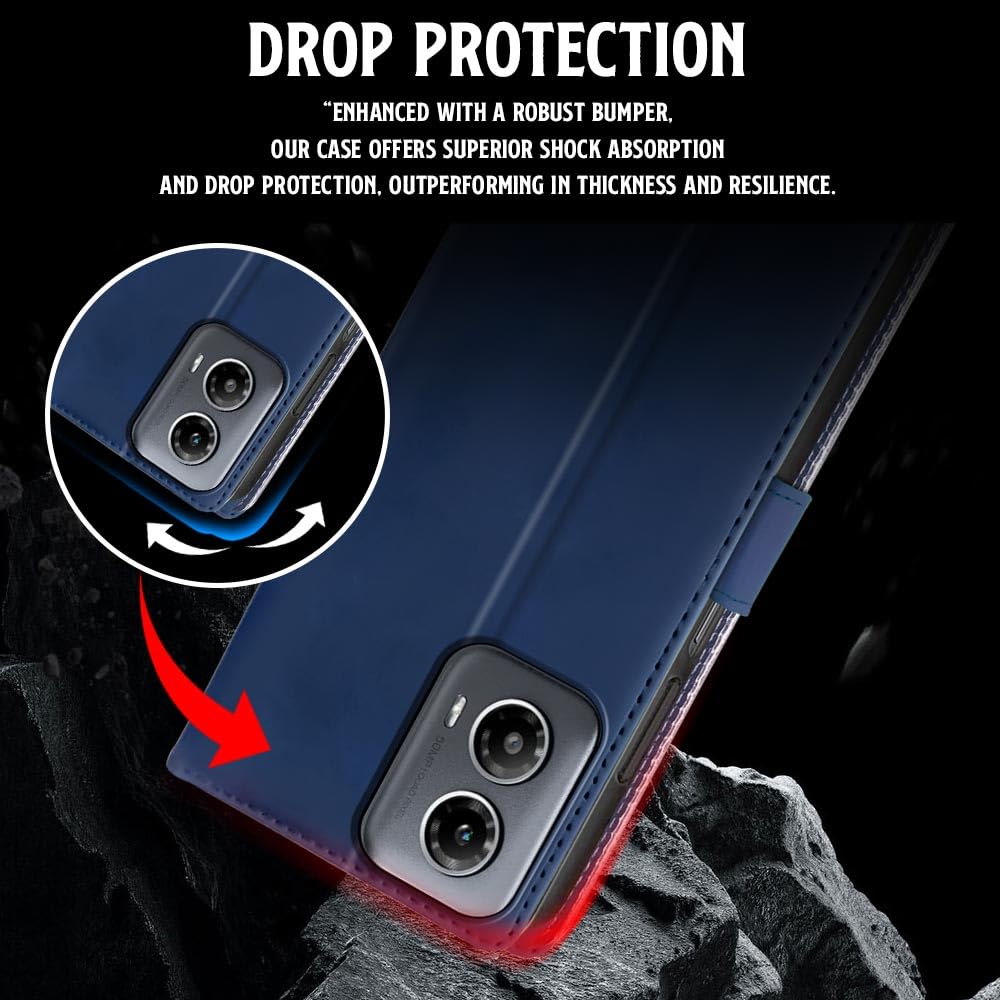 Shock Proof Flip Cover Back Case for Motorola Moto G34 5G | Magnetic Wallet Leather Case with Stand