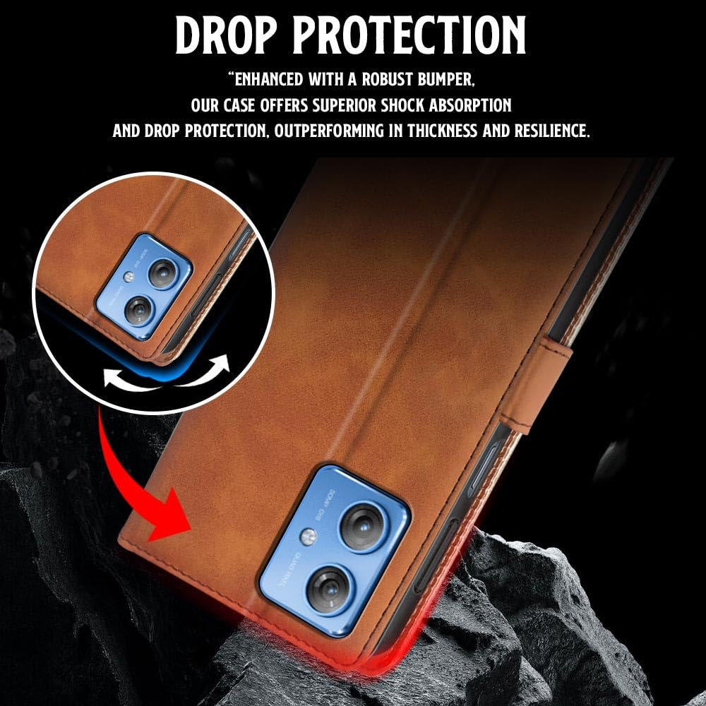 Shock Proof Flip Cover Back Case for Motorola Moto G54 5G | Magnetic Wallet Leather Case with Stand