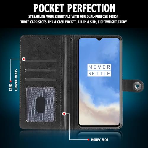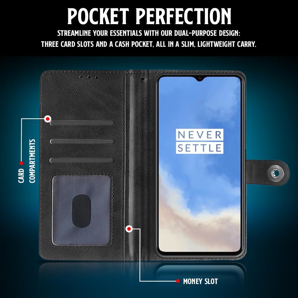 Shock Proof Flip Cover Back Case for Oneplus 7T | Magnetic Wallet Leather Case with Stand