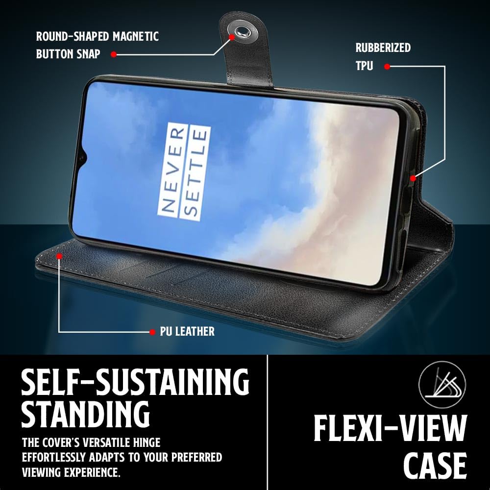 Buy premium shock proof flip cover back case for oneplus 7t. Leather finish with magnetic flip closure, wallet pockets and stand support. Durable protection against drops and scratches with a perfect fit for oneplus 7t.