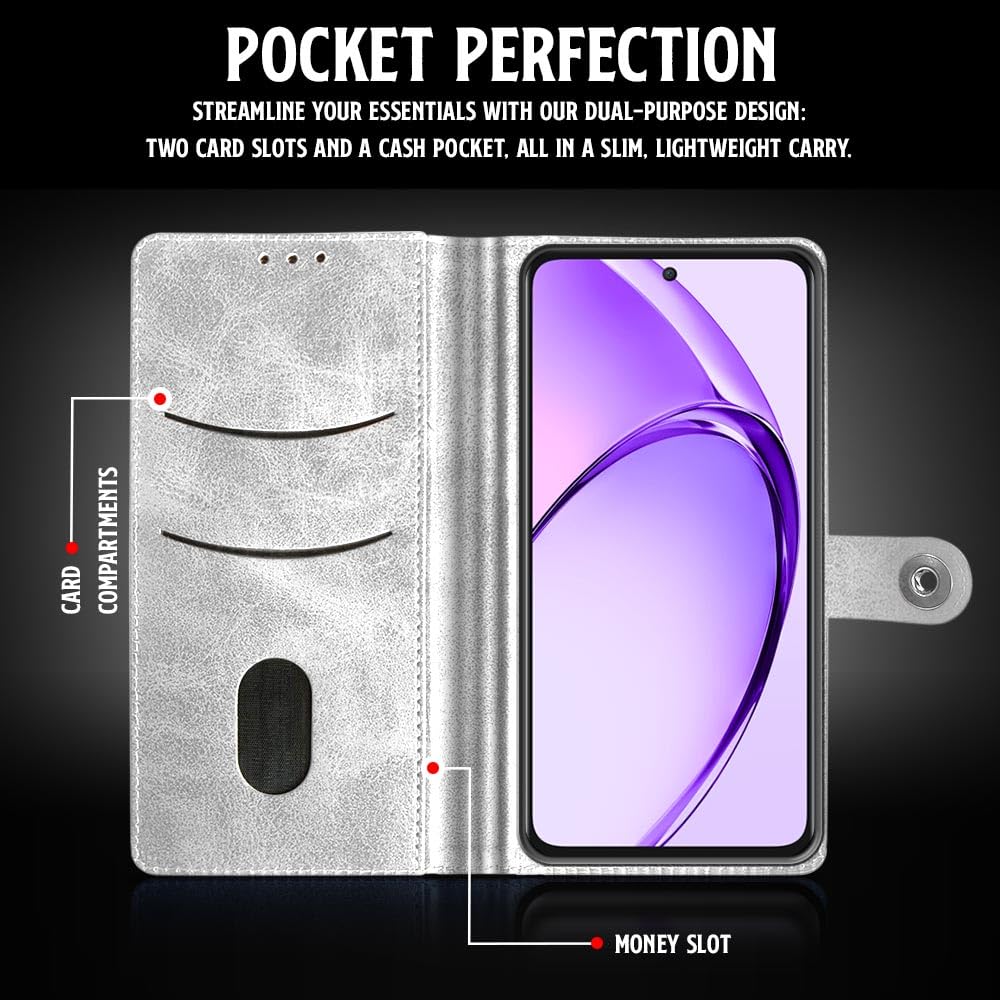 Buy premium shock proof flip cover back case for oppo a3 pro 5g. Leather finish with magnetic flip closure, wallet pockets and stand support. Durable protection against drops and scratches with a perfect fit for oppo a3 pro 5g.