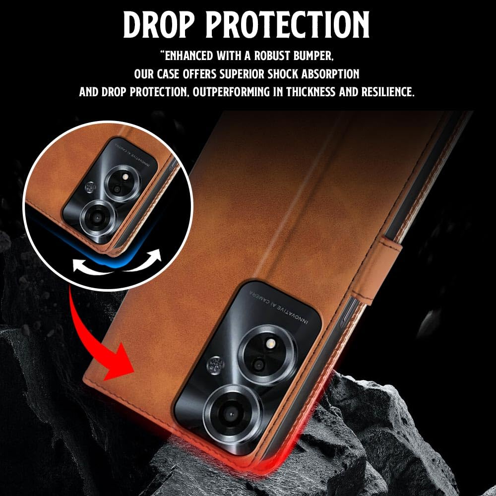 Shock Proof Flip Cover Back Case for Oppo A59 5G | Magnetic Wallet Leather Case with Stand