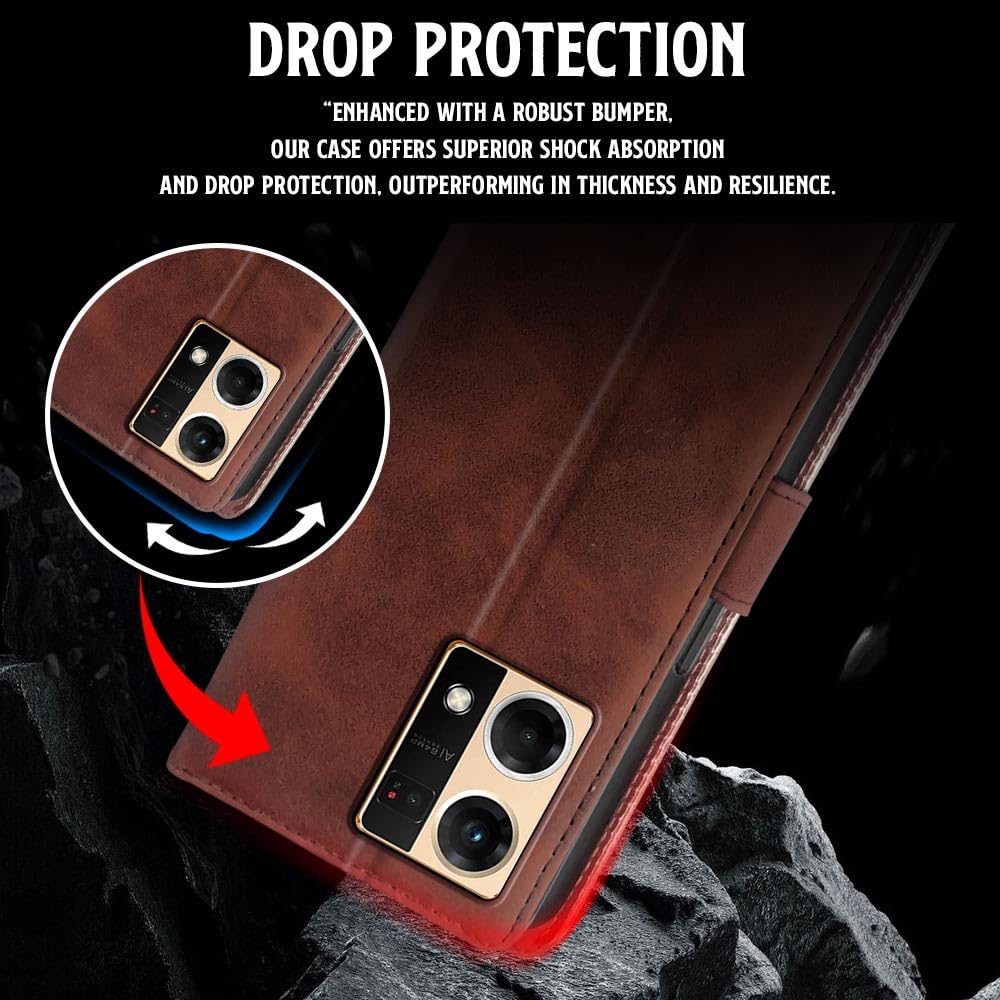 Shock Proof Flip Cover Back Case for Oppo F21 Pro 4G | Magnetic Wallet Leather Case with Stand