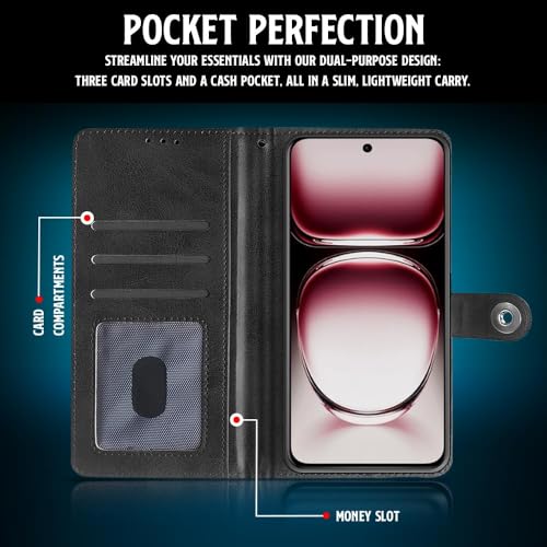 Shock Proof Flip Cover Back Case for Oppo Reno 12 Pro 5G | Magnetic Wallet Leather Case with Stand