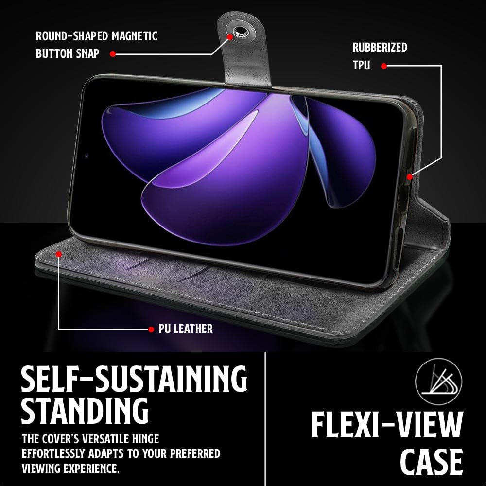 Shock Proof Flip Cover Back Case for Hmd Crest Max 5G | Magnetic Wallet Leather Case with Stand