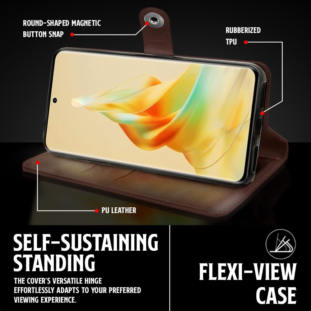 Buy premium shock proof flip cover back case for oppo reno8 t. Leather finish with magnetic flip closure, wallet pockets and stand support. Durable protection against drops and scratches with a perfect fit for oppo reno8 t.