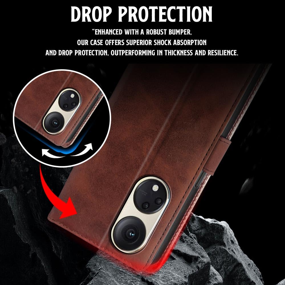 Shock Proof Flip Cover Back Case for Oppo Reno8 T | Magnetic Wallet Leather Case with Stand