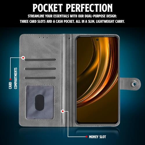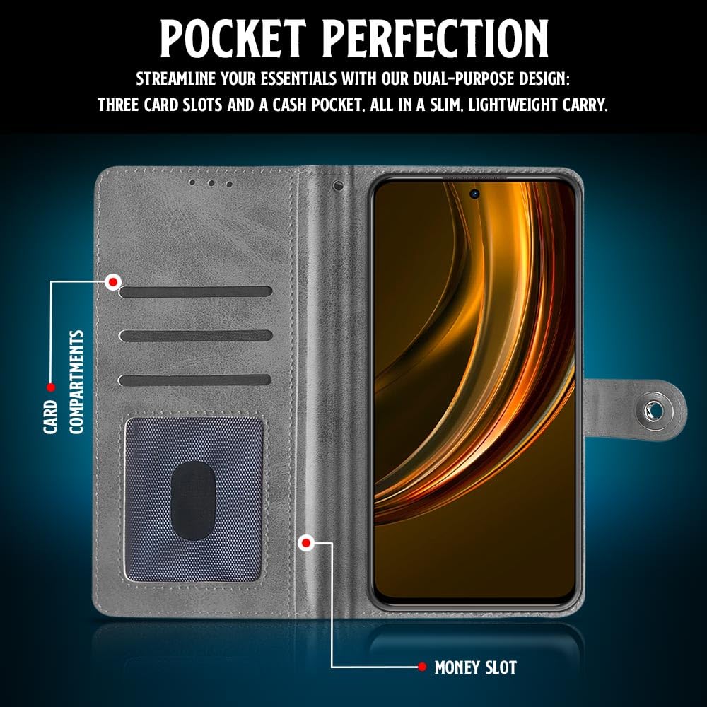 Shock Proof Flip Cover Back Case for Realme 13 Plus 5G | Magnetic Wallet Leather Case with Stand