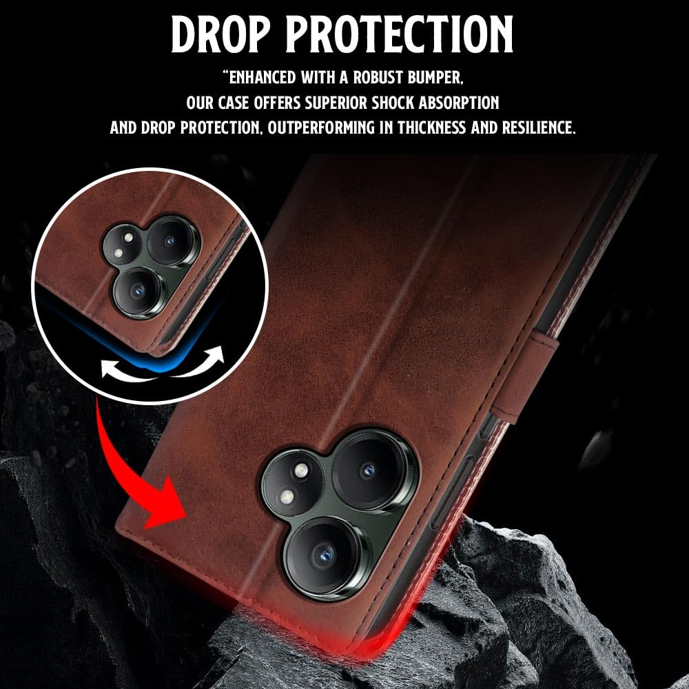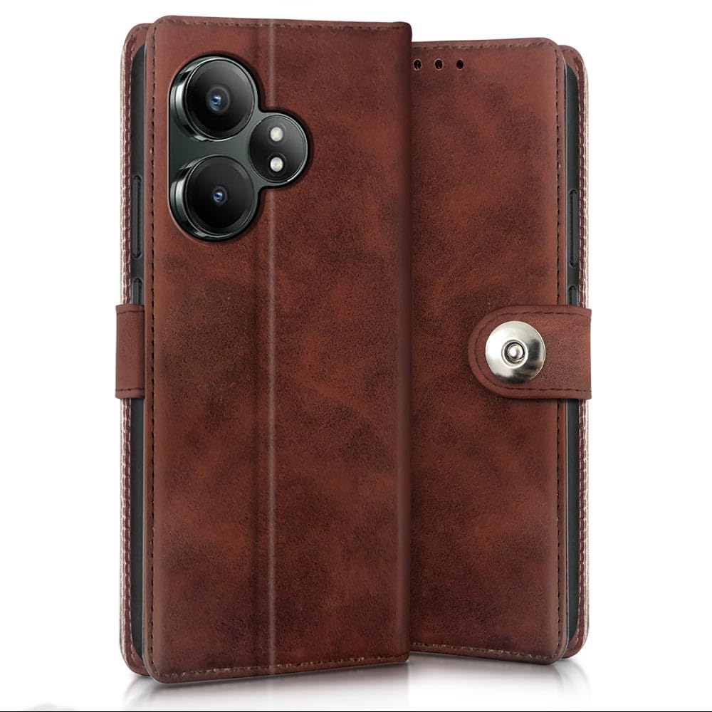 Shock Proof Flip Cover Back Case for Realme Gt 6T 5G | Magnetic Wallet Leather Case with Stand