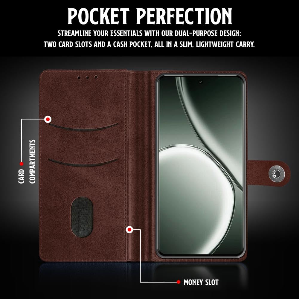 Shock Proof Flip Cover Back Case for 1+ Oneplus 12R 5G | Magnetic Wallet Leather Case with Stand