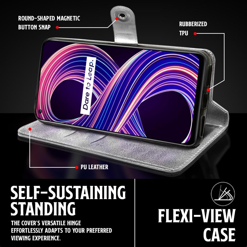 Shock Proof Flip Cover Back Case for Realme Narzo 30 5G | Magnetic Wallet Leather Case with Stand