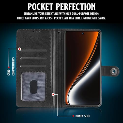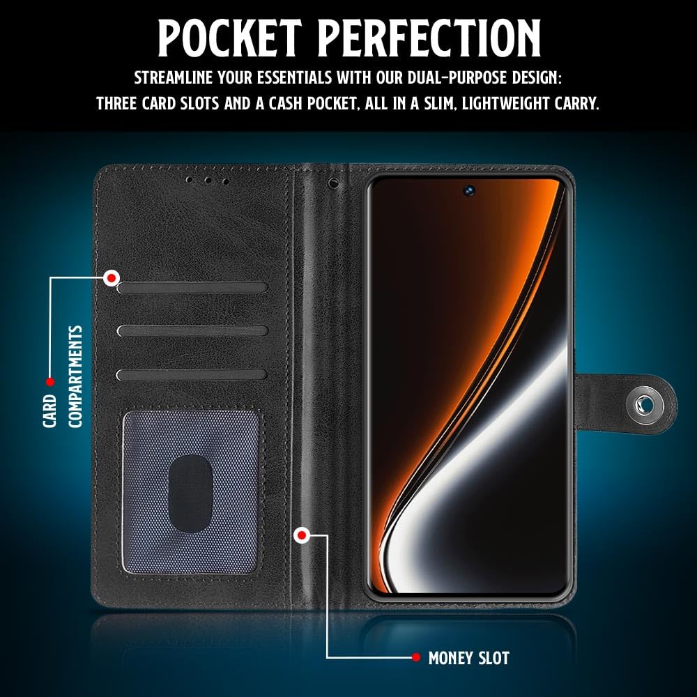 Shock Proof Flip Cover Back Case for Realme Narzo 80 Pro 5G | Magnetic Wallet Leather Case with Stand