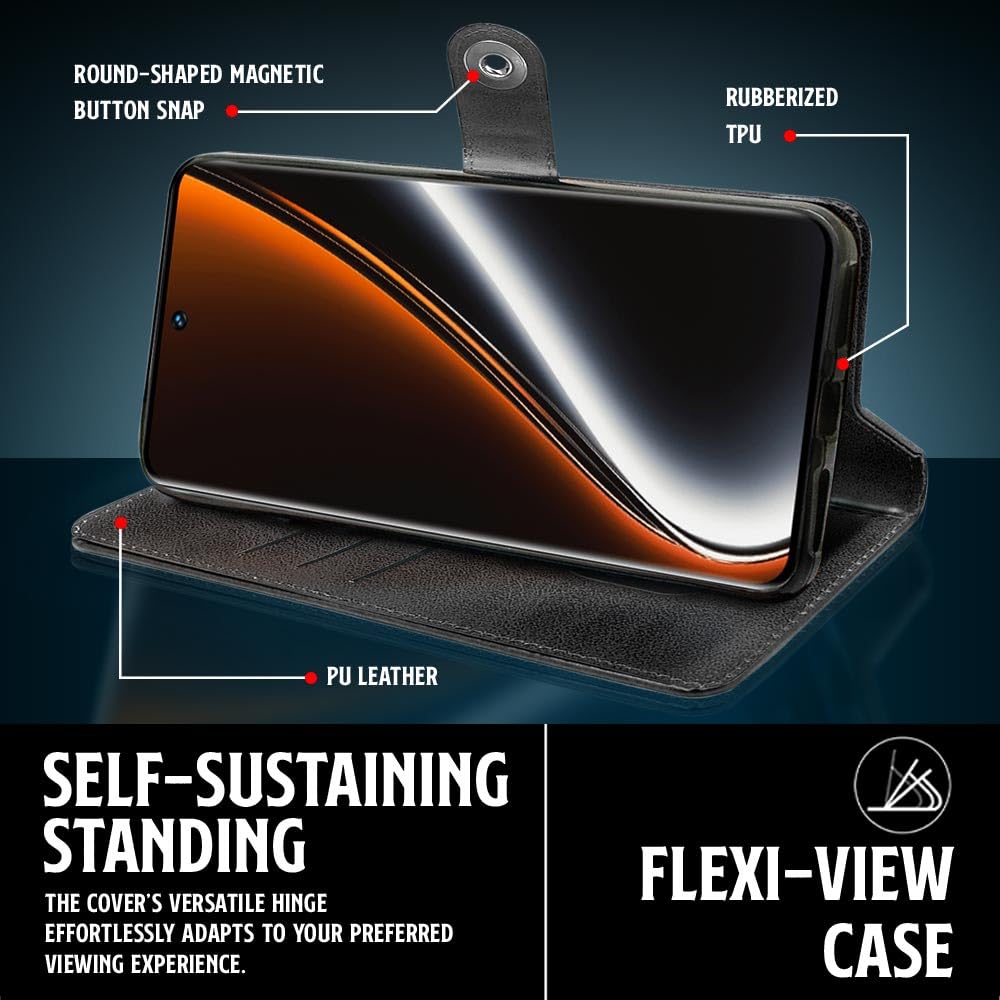 Shock Proof Flip Cover Back Case for 1+ Oneplus 11 5G | Magnetic Wallet Leather Case with Stand
