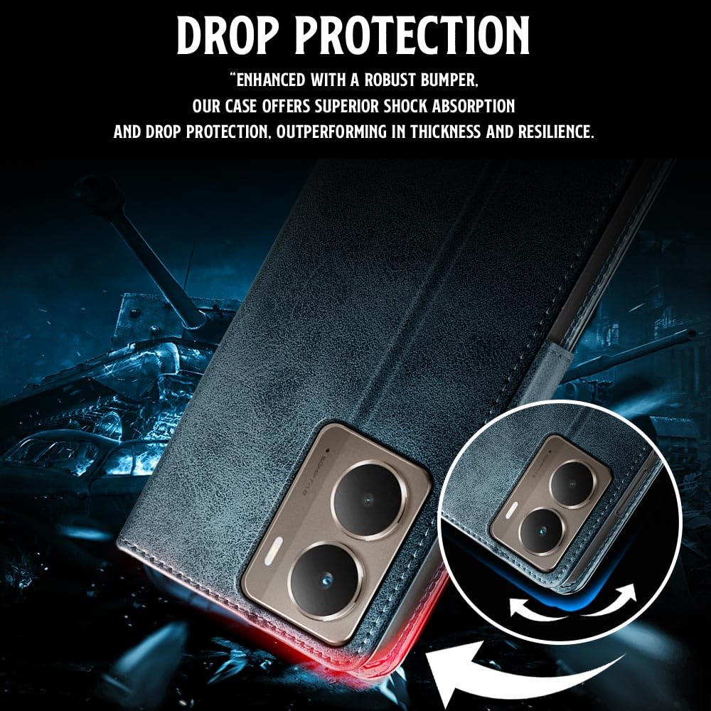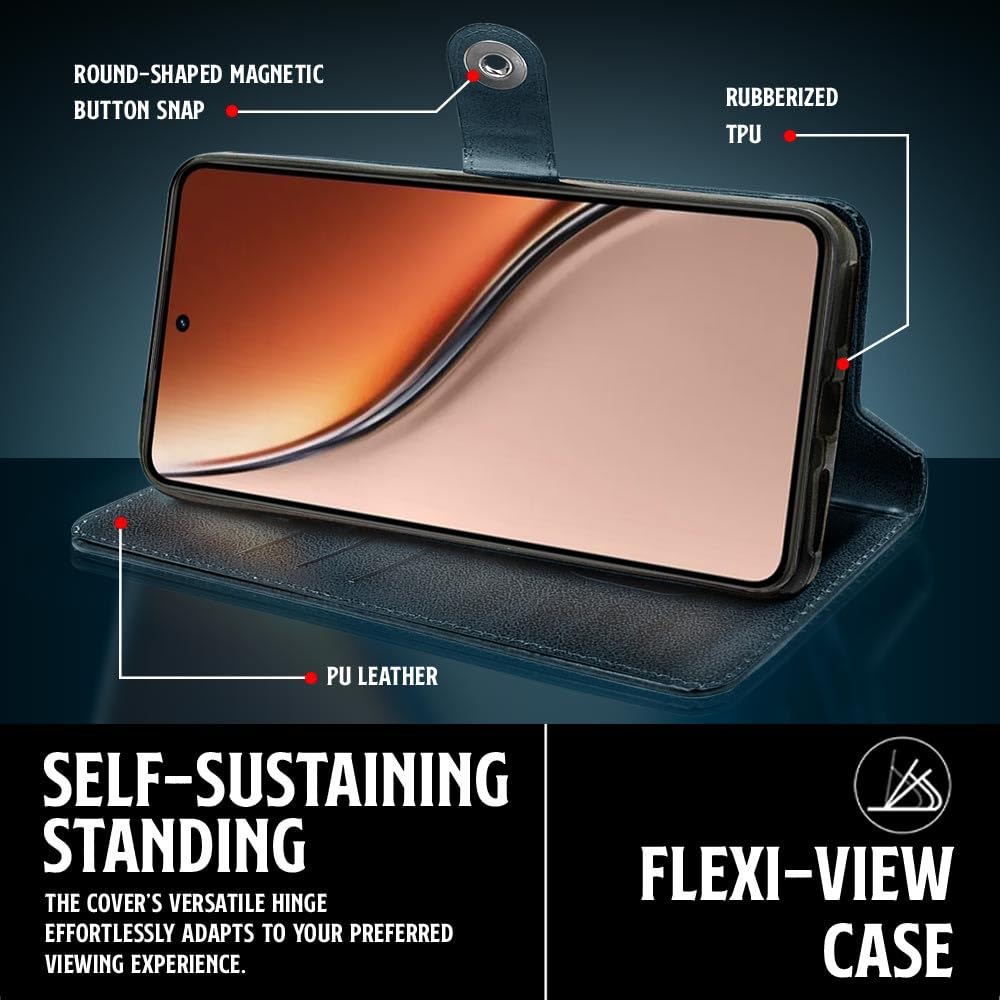 Shock Proof Flip Cover Back Case for Realme P3 5G | Magnetic Wallet Leather Case with Stand