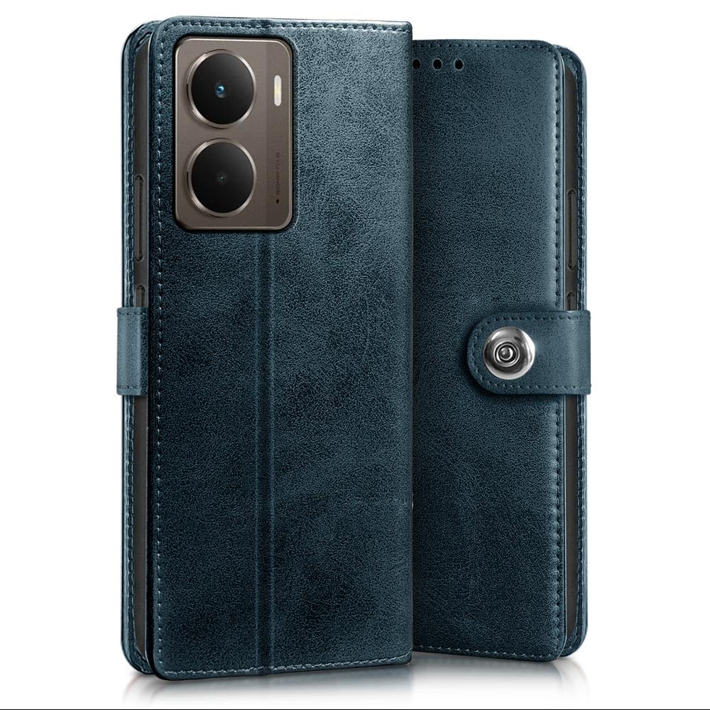 Buy premium shock proof flip cover back case for realme p3 5g. Leather finish with magnetic flip closure, wallet pockets and stand support. Durable protection against drops and scratches with a perfect fit for realme p3 5g.