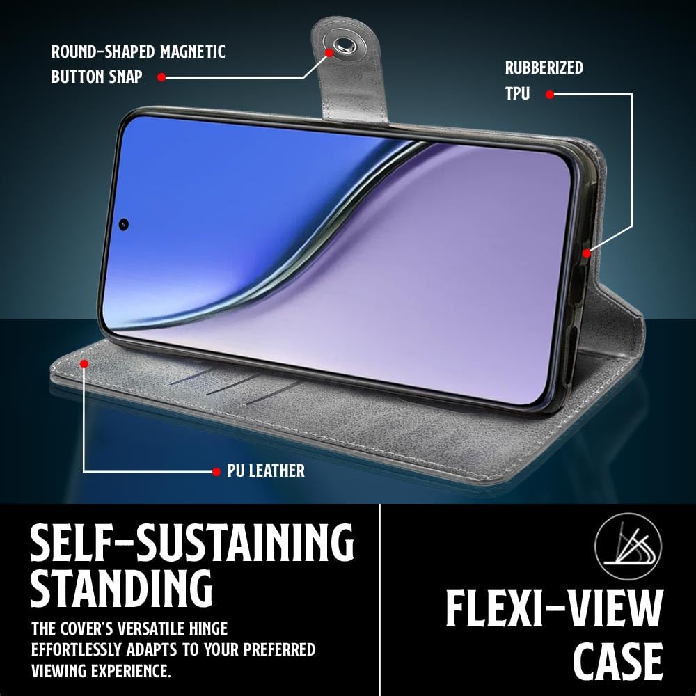 Shock Proof Flip Cover Back Case for Realme P3 Ultra 5G | Magnetic Wallet Leather Case with Stand