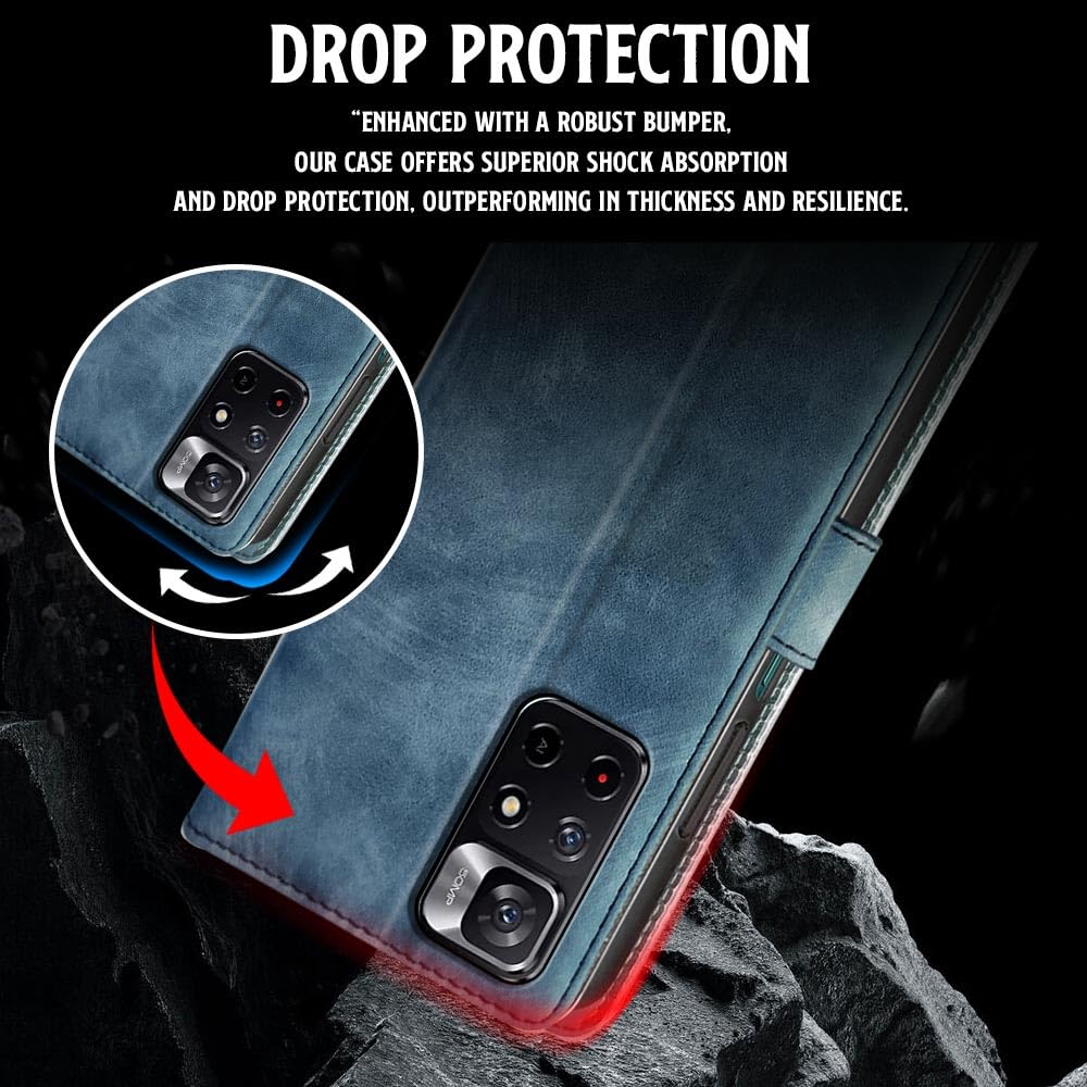 Shock Proof Flip Cover Back Case for Redmi Note 11T 5G | Magnetic Wallet Leather Case with Stand