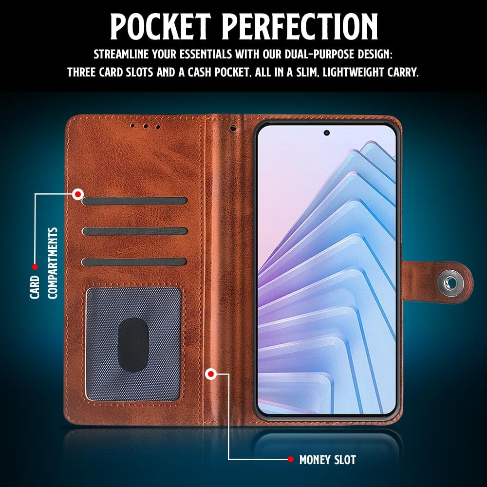 Shock Proof Flip Cover Back Case for Redmi Note 14 Se 5G | Magnetic Wallet Leather Case with Stand