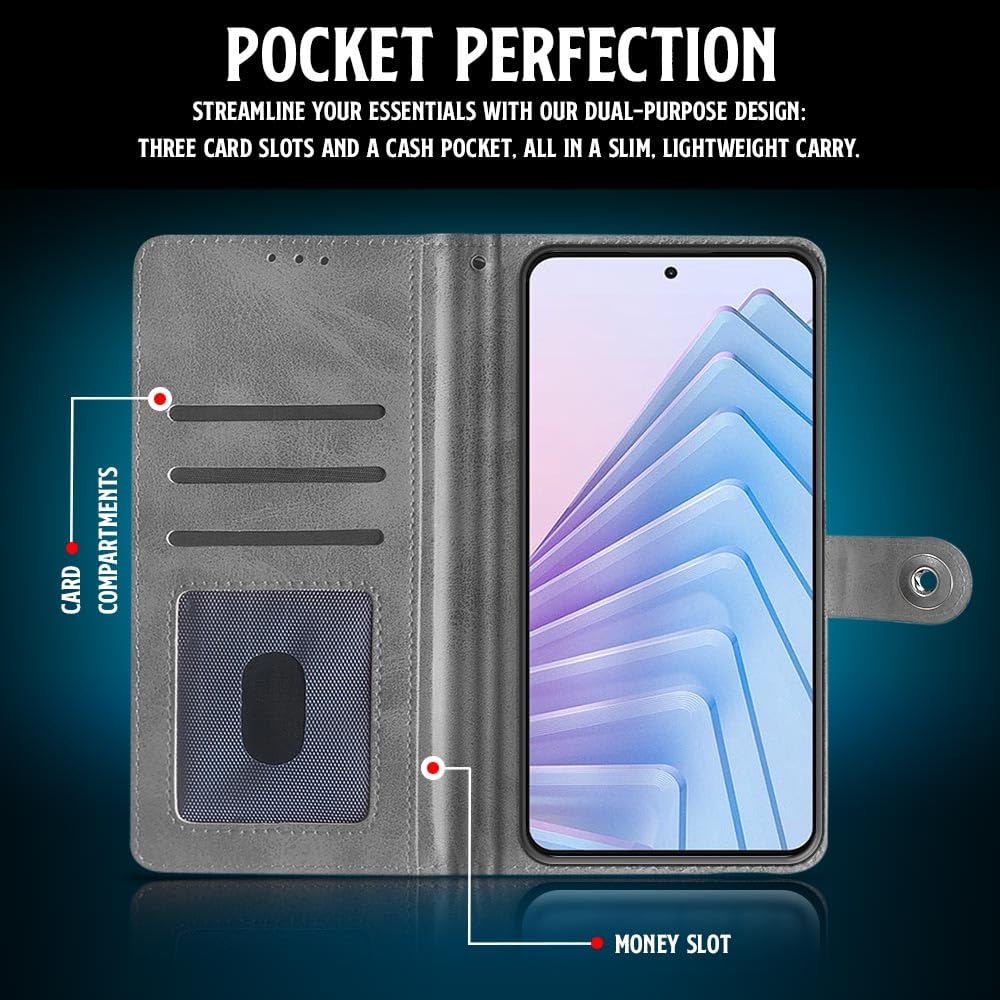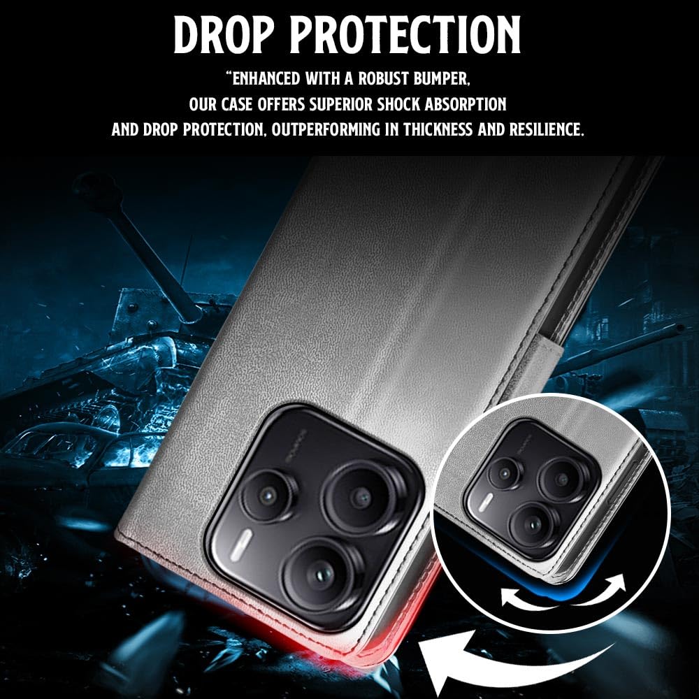 Shock Proof Flip Cover Back Case for Redmi Note 14 Se 5G | Magnetic Wallet Leather Case with Stand
