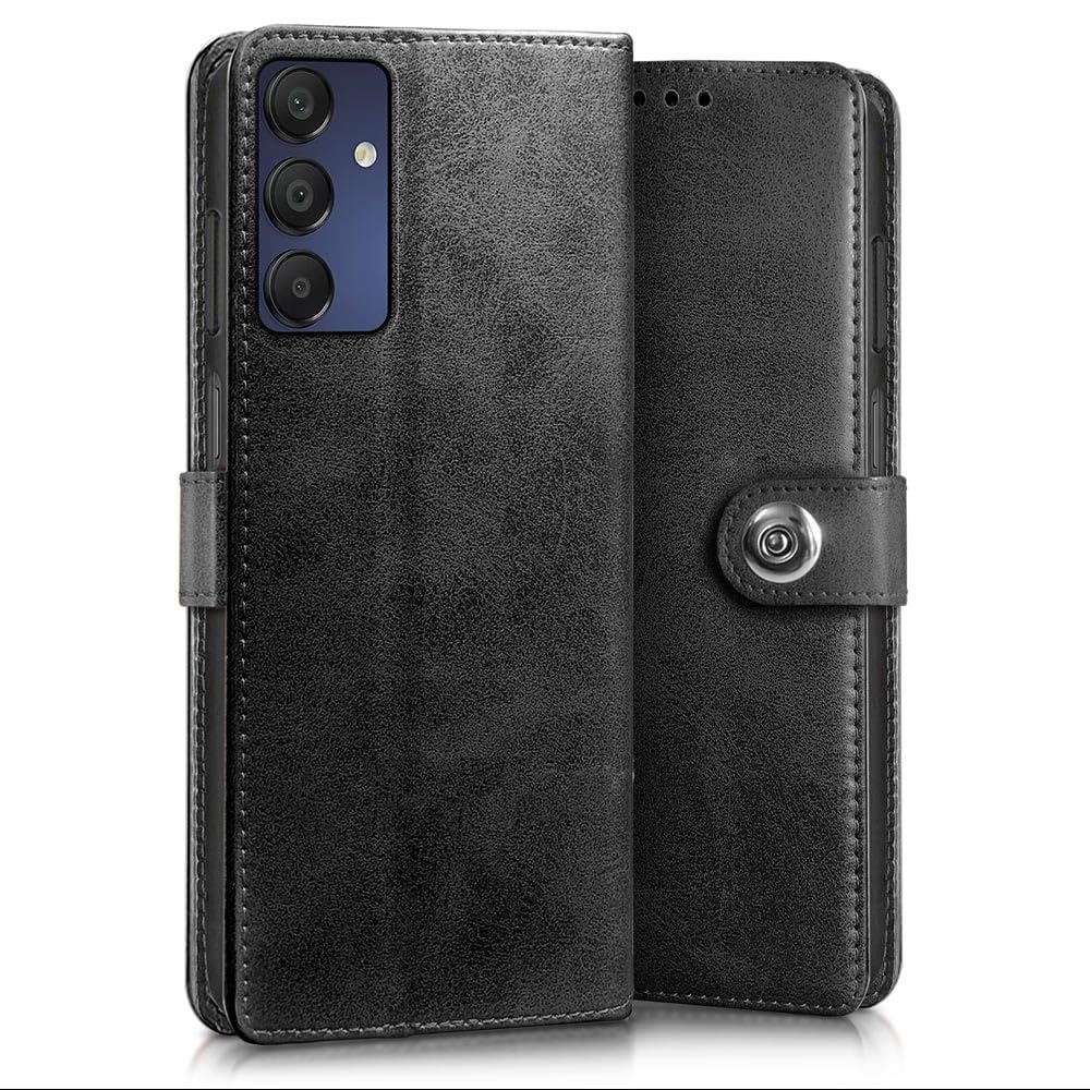 Buy premium shock proof flip cover back case for samsung galaxy a15 5g. Leather finish with magnetic flip closure, wallet pockets and stand support. Durable protection against drops and scratches with a perfect fit for samsung galaxy a15 5g.