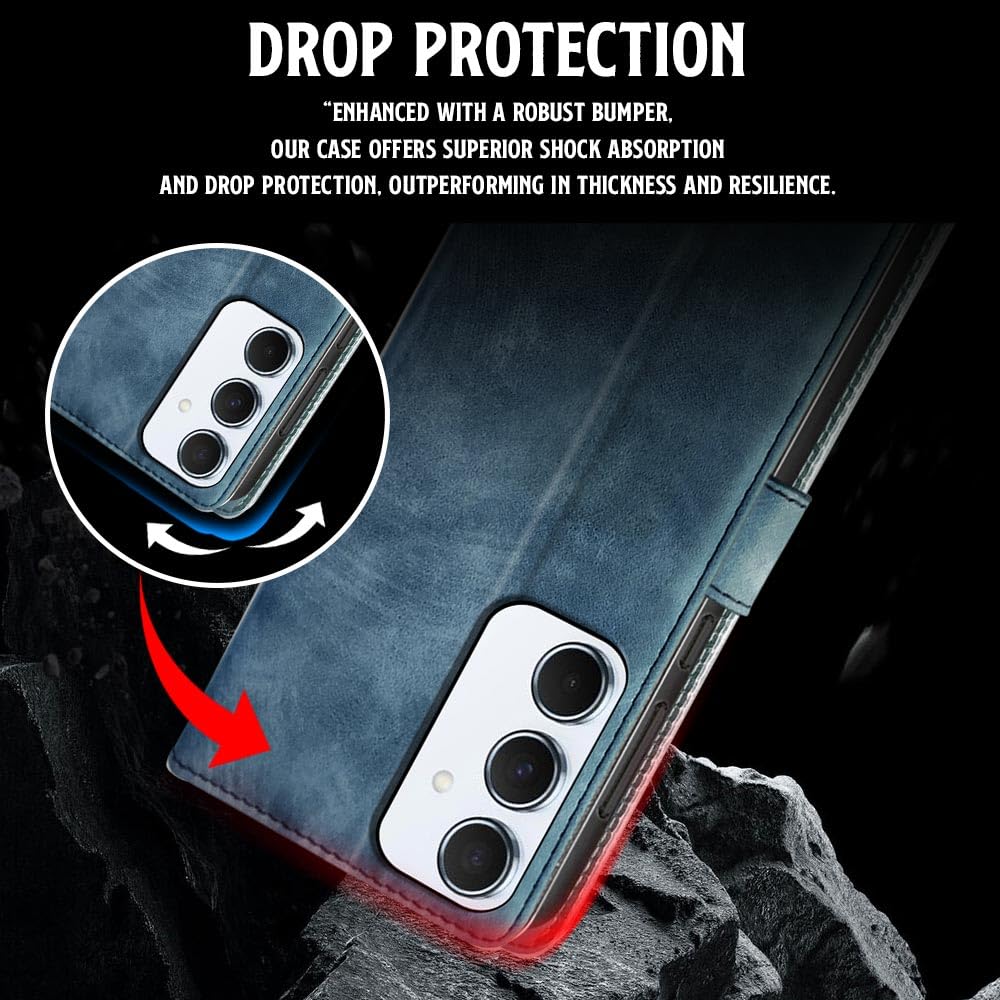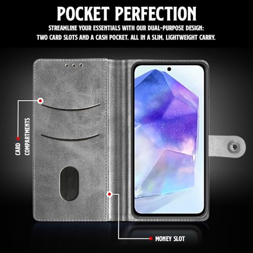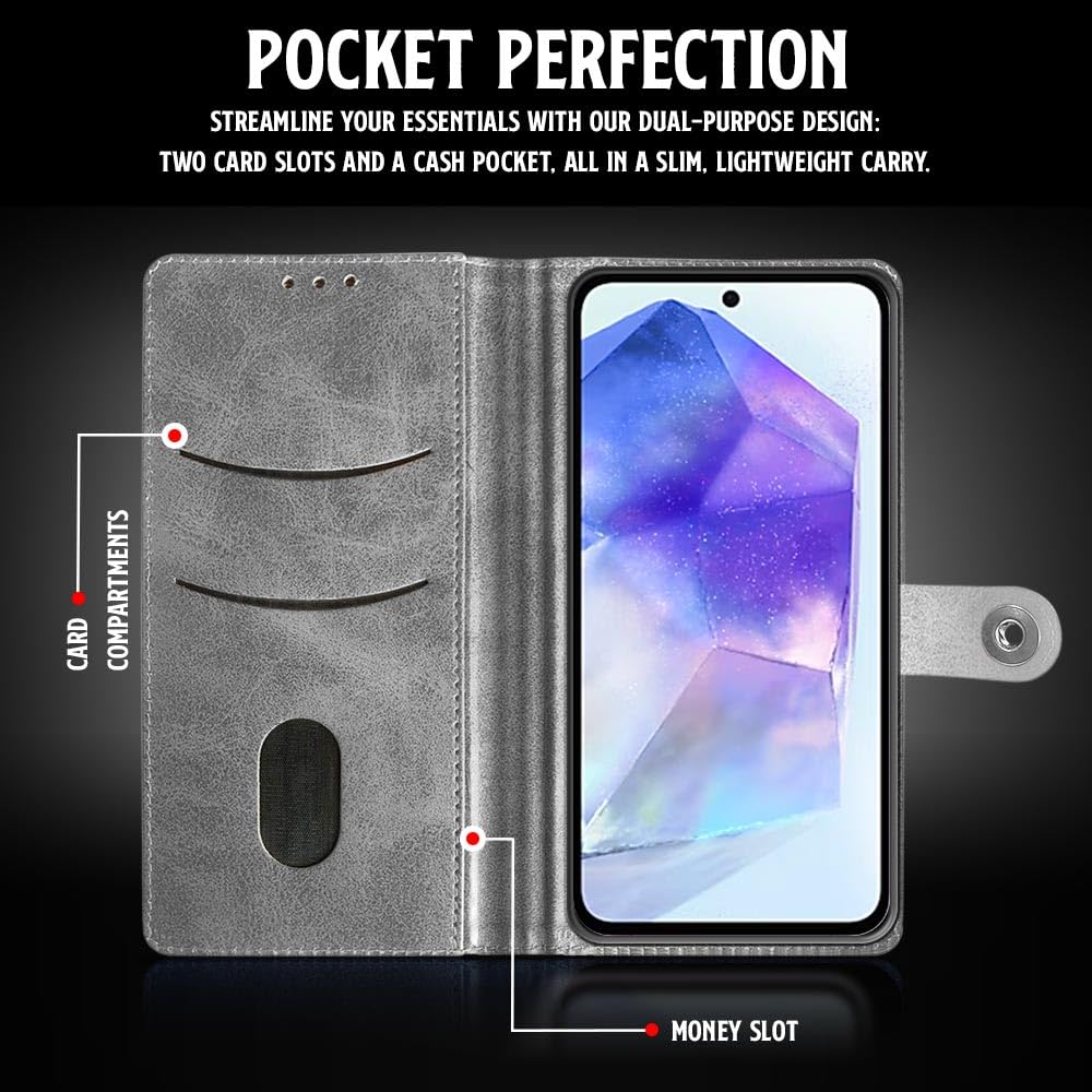 Shock Proof Flip Cover Back Case for Samsung Galaxy A55 5G | Magnetic Wallet Leather Case with Stand