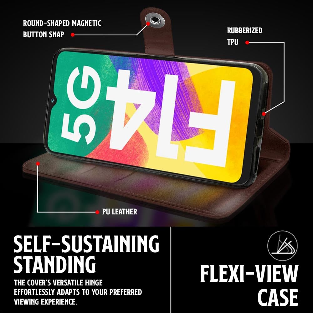 Shock Proof Flip Cover Back Case for Samsung Galaxy F14 5G | Magnetic Wallet Leather Case with Stand