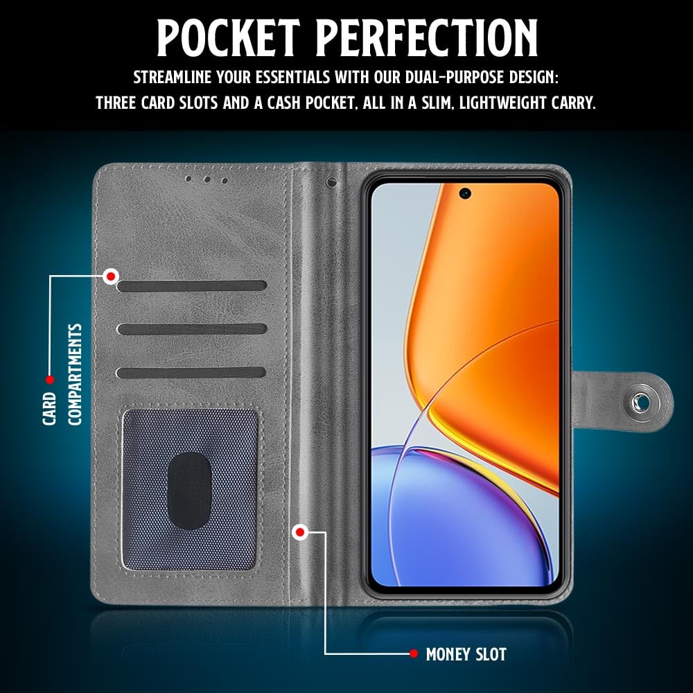 Shock Proof Flip Cover Back Case for Hmd Crest Max 5G | Magnetic Wallet Leather Case with Stand