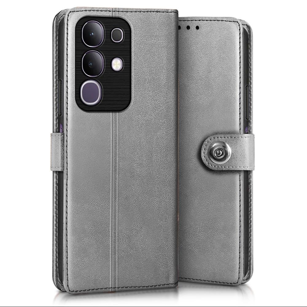 Buy premium shock proof flip cover back case for vivo t4x 5g. Leather finish with magnetic flip closure, wallet pockets and stand support. Durable protection against drops and scratches with a perfect fit for vivo t4x 5g.
